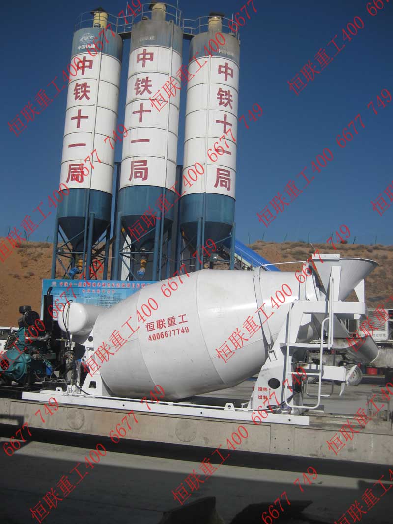 水泥攪拌車加裝在無軌膠輪車上