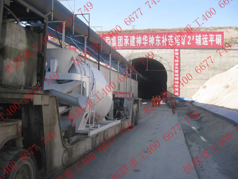 無軌道水泥攪拌車駛?cè)朊旱V隧道施工
