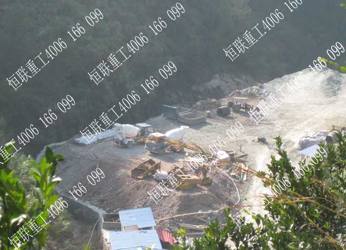 為客戶改裝的混凝土攪拌車在大山深處施工
