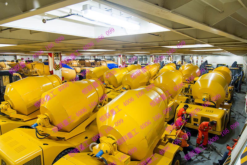 我司近20臺自動上料3方水泥攪拌車放在船艙只不過占據一角而已